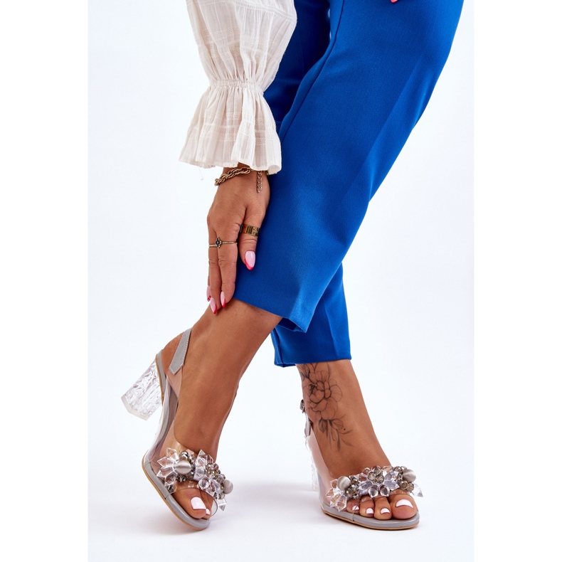 The shoes are distinguished by a transparent 7 cm high block heel, which gives them a modern look. The front of the sandals is decorated with stylish imitations of crystals and beads, which attract attention and give a feminine chic. Thanks to the soft, profiled insole made of natural leather, you will be able to enjoy the comfort of wearing them every day.