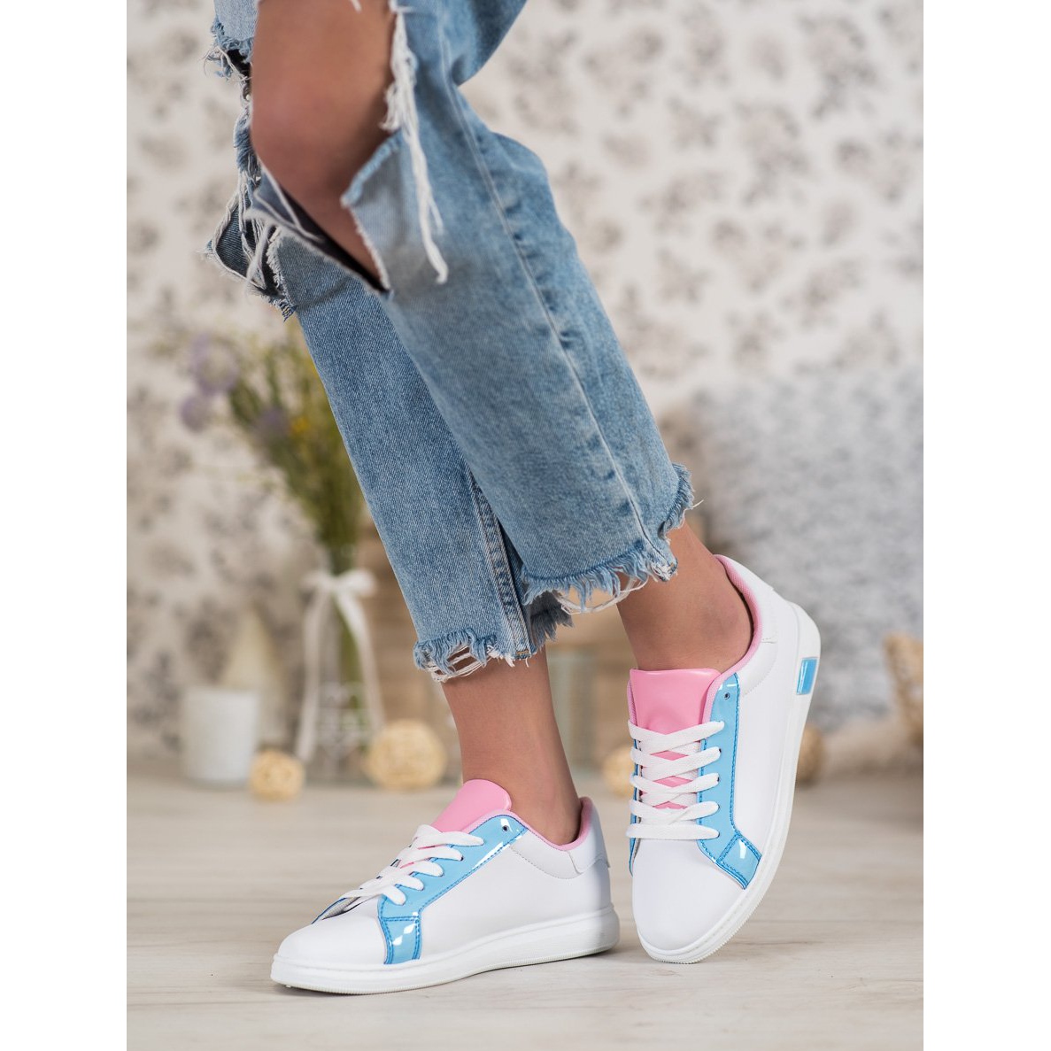 Details: Ideal Shoes Fashionable Sneakers With Eco Leather white blue pink multicolored