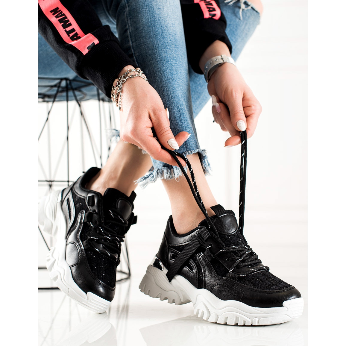 We present fashionable glitter sneakers from the manufacturer TRENDI – the perfect choice for women who want to combine comfort with shiny style. These black, sports shoes were created with everyday use in mind, so they will work perfectly in every situation, both during walks around the city and during weekend meetings with friends.