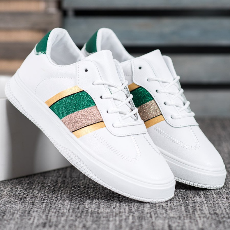Made with dedication, using high-quality materials, they are resistant to everyday wear - thanks to the outer material imitating leather combined with textile elements. These characteristic shoes, in addition to the timeless white color, attract attention with multi-colored inserts that bring freshness and modernity to your outfit.