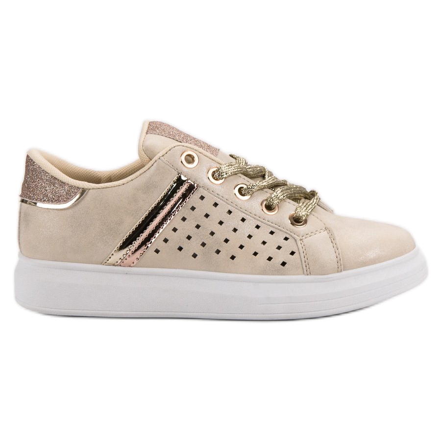 Discover fashion and comfort in one with our stylish brown sports shoes! These shoes in a delicate shade of beige with unique gold accents are the perfect choice for women who want to stand out from the crowd. Designed with originality in mind, this model looks great on your feet, emphasizing any styling.