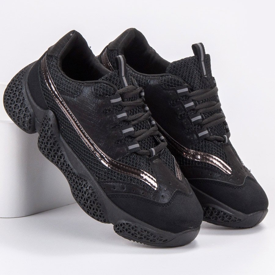 SHELOVET Fashionable Sports Shoes Black is an ideal proposition for women who value comfort and modern style. These unique sports shoes are distinguished by a decorative, shiny strap, which adds elegance and originality. Thanks to the thick sole made of synthetic material, the shoes perfectly isolate the foot from the ground, which ensures comfort during everyday walks and activities.