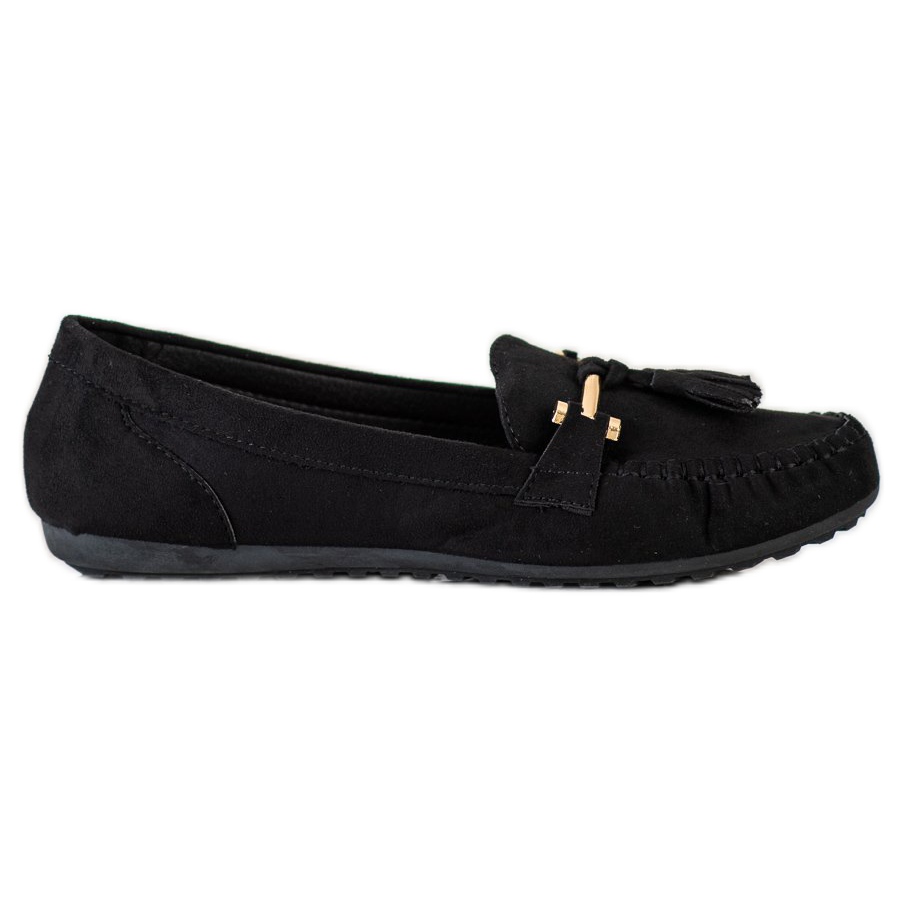 Made of high-quality imitation suede, these black moccasins are not only aesthetically pleasing but also practical. The synthetic tread sole provides excellent grip, making them an ideal choice for spring and summer days. Additionally, the original fringes add character, making them a unique element of any styling.