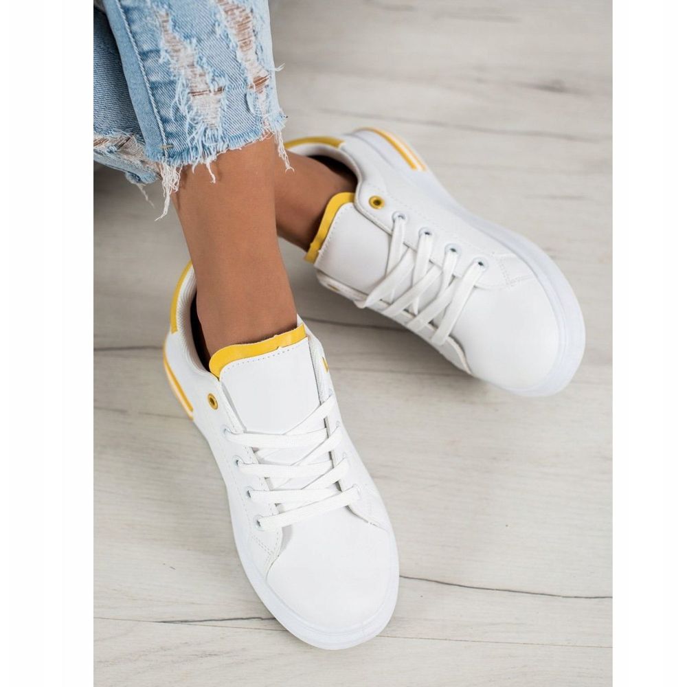 Discover elegance and comfort in every step with white yellow SHELOVET sneakers. These fashionable women's shoes on a 3.5 cm platform combined with yellow decorative straps on the back create a unique and stylish look that will work perfectly in both everyday and more casual styles.