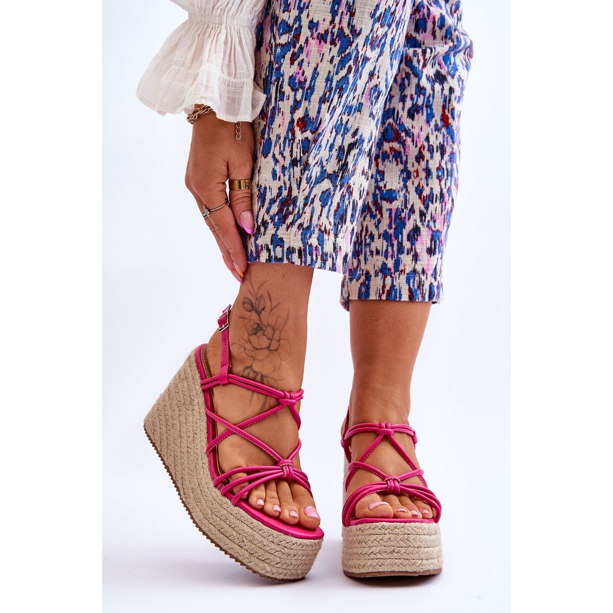 Inna marka Fashionable Wedge Sandals With Braid Fuchsia Nessia pink