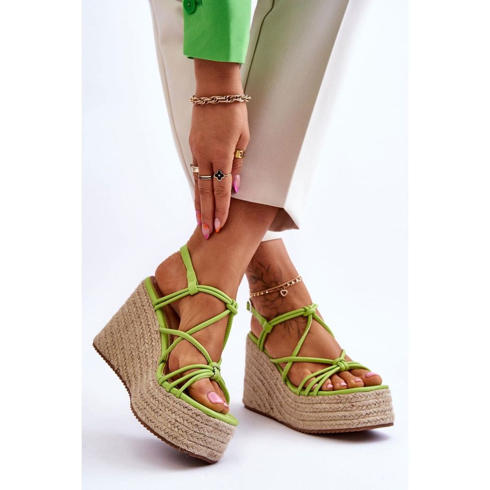Inna marka Fashionable Wedge Sandals With Braid Green Nessia