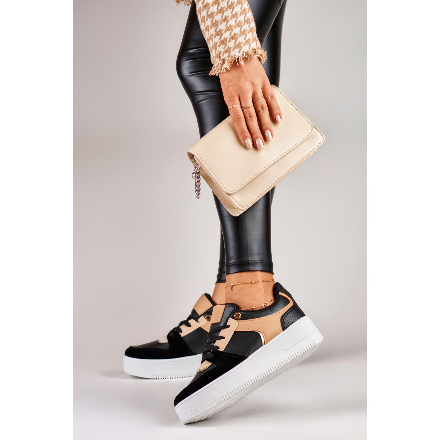 - With a light dress or skirt for sports and elegant contrast.