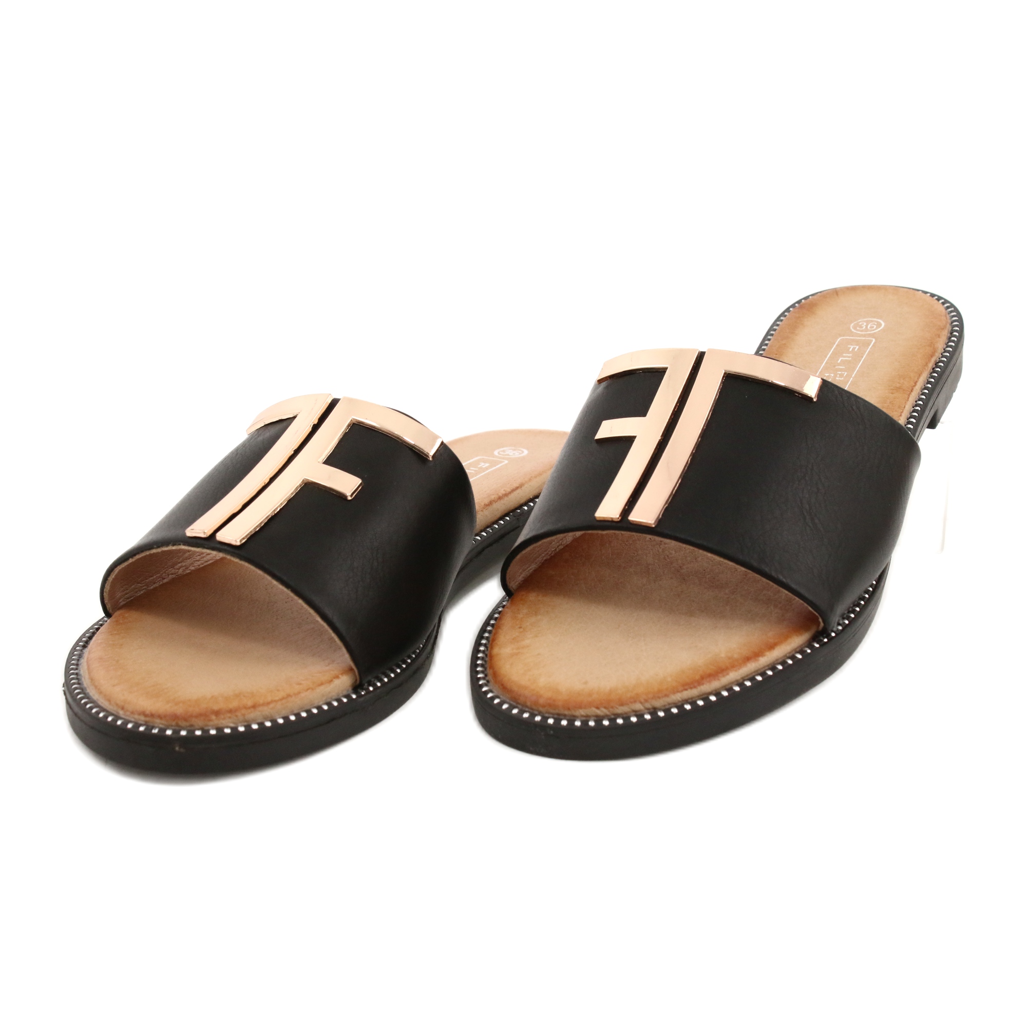 Details: Filippo Fashionable women's slippers Black and Gold DK2103