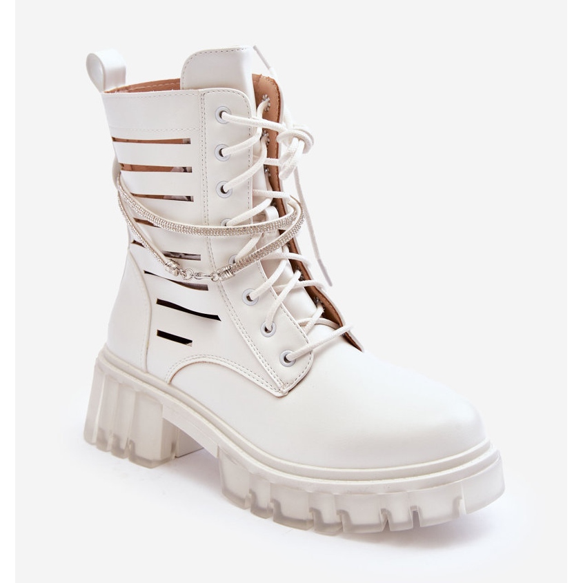 Fashionable boots workers with a decorative strap - Rocky (white)