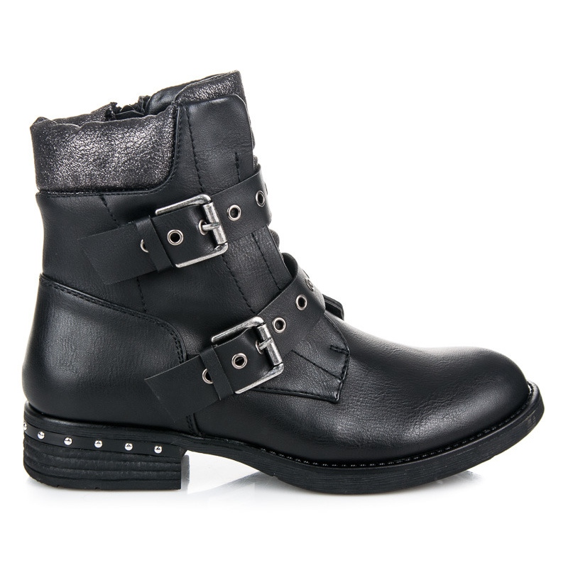 Discover comfort and style in one! Black Erynn workers are a proposal for brave women who want to stand out from the crowd. These fashionable ankle boots refer to the rock character of combat boots, being a perfect complement to any styling with a claw.