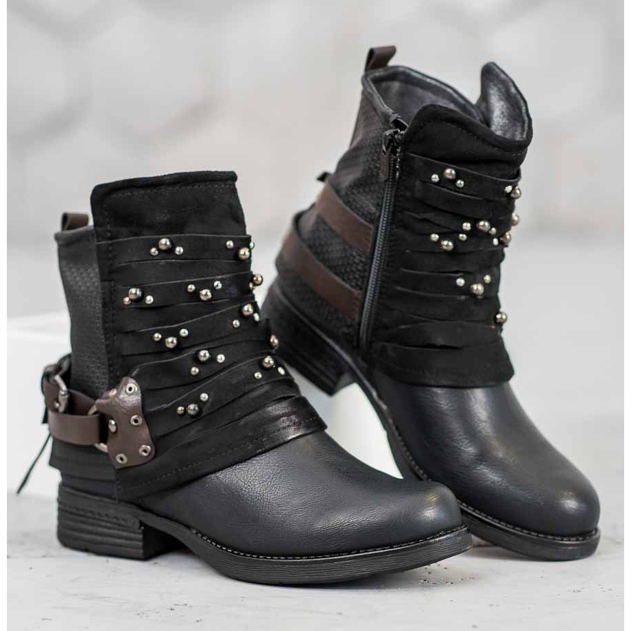 With a wide 3.5 cm heel, Workers provide stability and comfort during everyday walks, and the insulated interior makes them a great choice for colder days. Uppers decorated with rhinestones and a brown strap with a buckle add a unique character to the shoes, perfectly fitting into the rock and classic style.