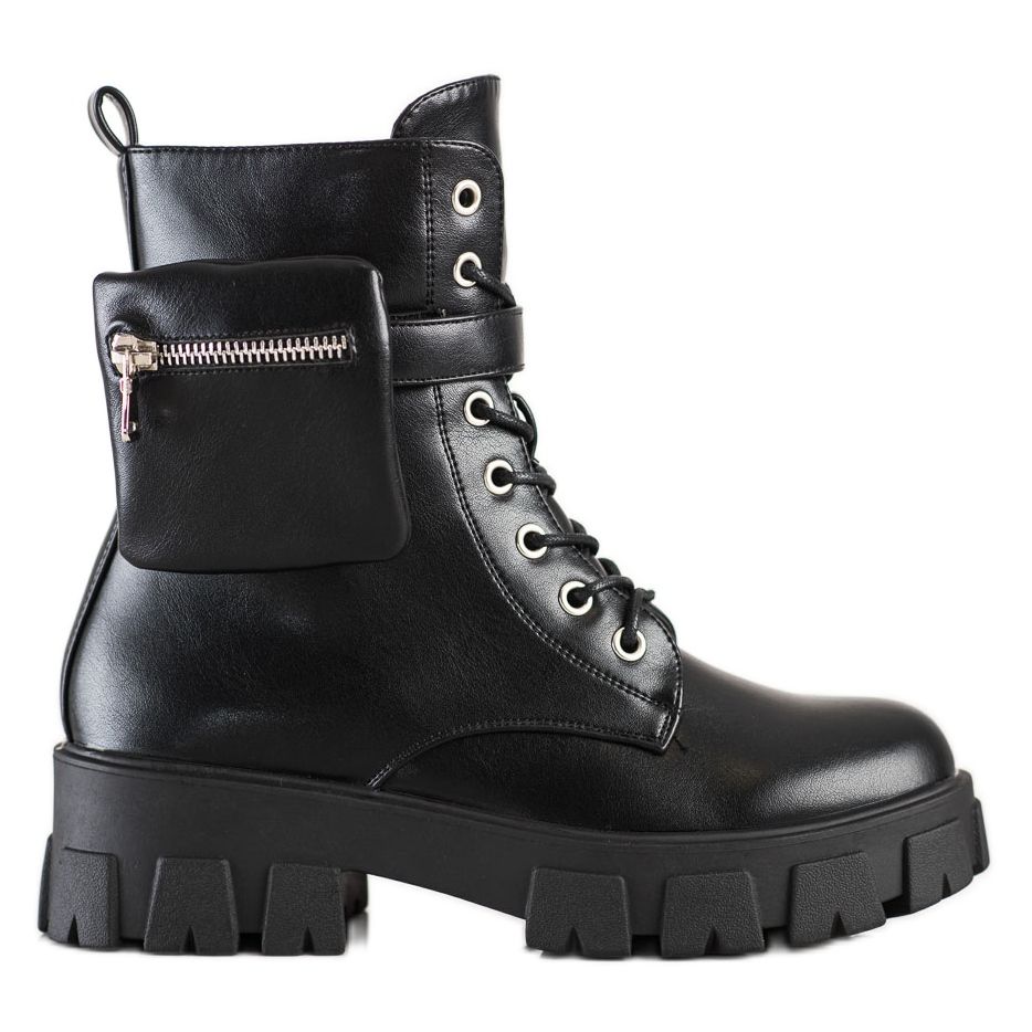 Black workers made of high-quality eco-leather provide a great look and comfort of wearing. The round toe and soft, closed heel make them extremely comfortable, and their classic, minimalist design without a pattern fits perfectly into current fashion trends. The height of the upper is 16 cm and the width is 20 cm, making them fit perfectly to the leg.