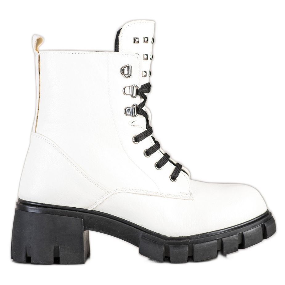 Here is the perfect proposition for lovers of a stronger style – fashionable workers with studs from SHELOVET! These white combat boots combine a rock character with a casual design, which makes them perfect for everyday wear, both with your favorite jeans and rock skirts.