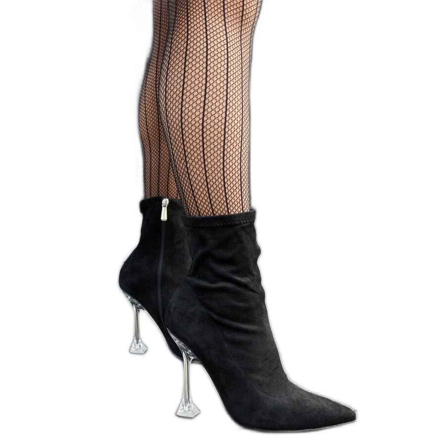 Black Ferguson boots with a decorative heel is a combination of classic elegance with a modern accent. The round nose gives them a subtle style, and a spectacular pin with a height of 11.5 cm distinguishes them from the crowd, adding femininity and confidence. The JD2202 model is made of suede ecological leather in black and will work in the autumn -winter season.