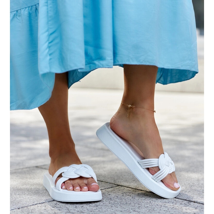 The CM-49 model is distinguished by a sliding clasp, which makes it easier to put on. The 3 cm high platform ensures the comfort of wearing all day, and the white color of the sole fits perfectly into the latest fashion trends. Ferrei flip flops are part of the summer collection and will certainly become a favorite element of every woman's wardrobe.