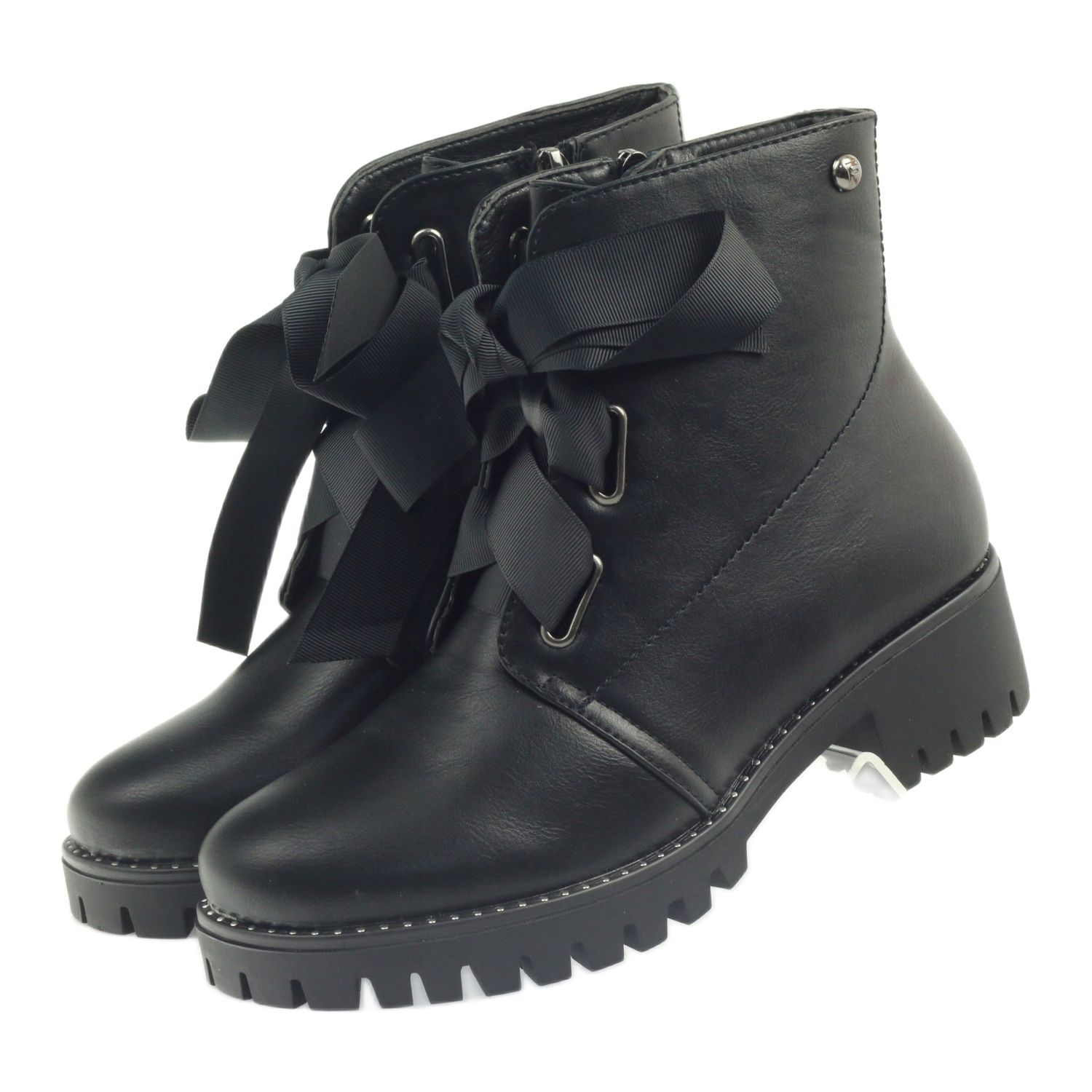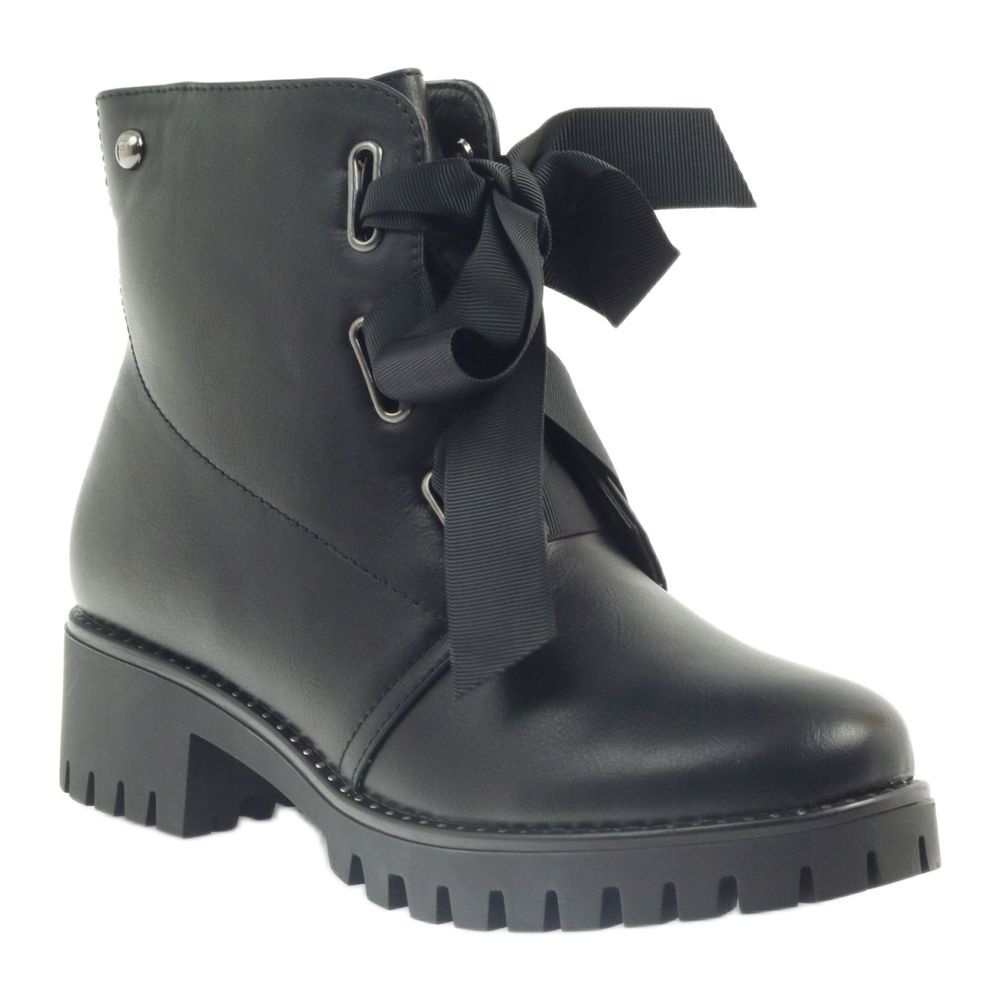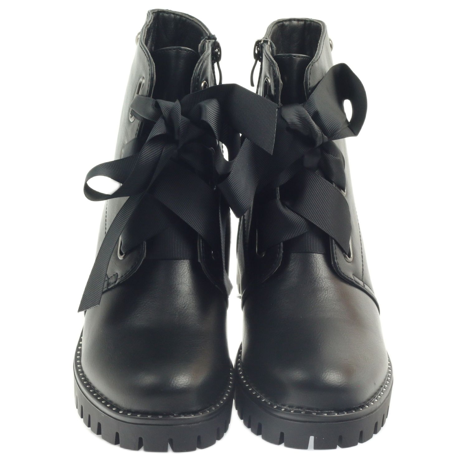 The upper, approximately 15 cm long, perfectly protects the ankle, and the black color means that the workers will match many different outfits - from casual to more elegant. Additionally, this model has been decorated with rhinestones, which gives it an unusual character and makes every woman in these boots attract attention.