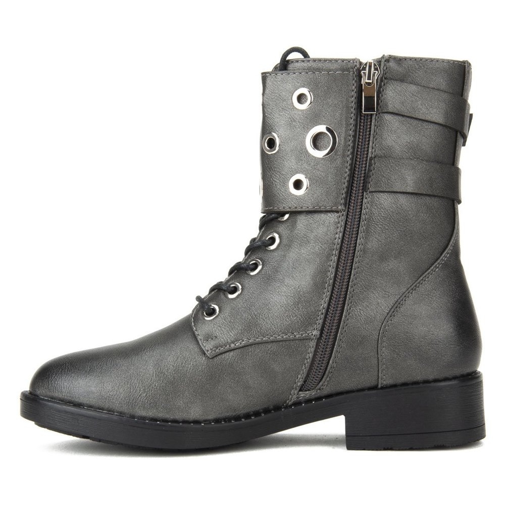 The interior is finished with a different type of material for comfort, and the zipper makes putting on and taking off the shoes quick and easy. These boots will be a great addition to any wardrobe, and their universal gray color will allow for easy matching to various styles.
