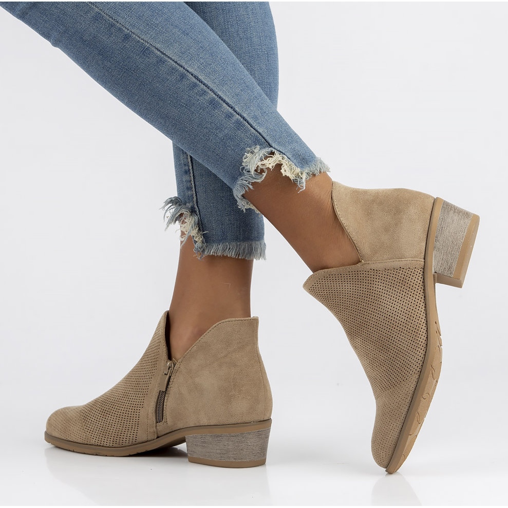 The upper, with a height of 10 cm, reaches above the ankle, providing not only an attractive appearance, but also proper support for the foot. The round toe and almond shape of the toe are details that emphasize their unique style. The boots are fastened with a zipper, which makes them easy to put on and take off.