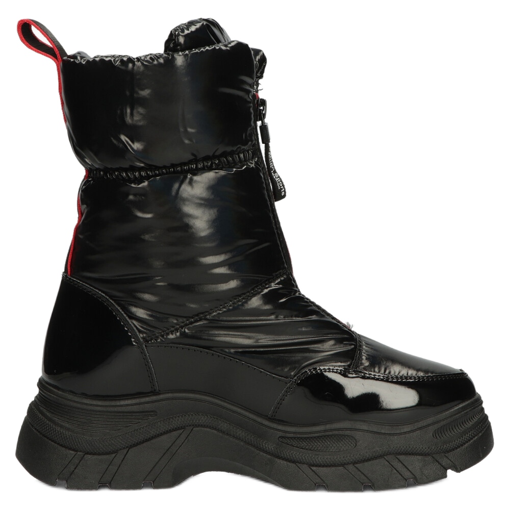 Elegant and functional - snow boots Filippo DBT4236 is a proposal for women who value warmth and fashionable appearance during cold days. Made of combining ecological leather and fabric, with soft fur inside, they provide thermal and stylish comfort, universal design in black.