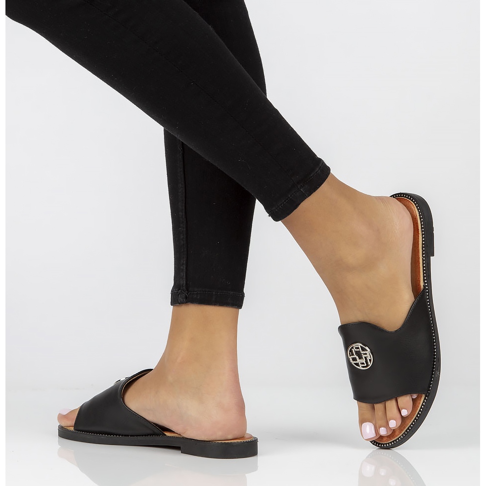 The flip-flops have a flat heel of 2 cm, which makes them an ideal choice for casual sets. Thanks to the simple, round toe and lightweight synthetic sole, you can enjoy stability and comfort with every step. Their universal black color makes them suitable for many styles - both for everyday outfits and slightly more elegant sets.