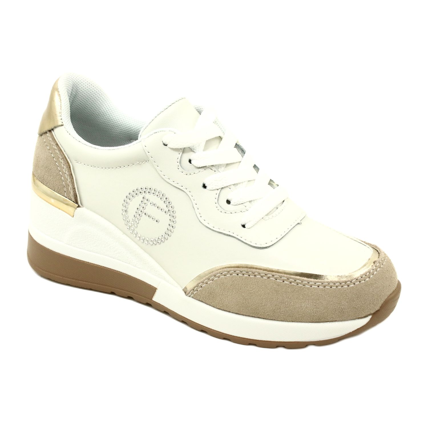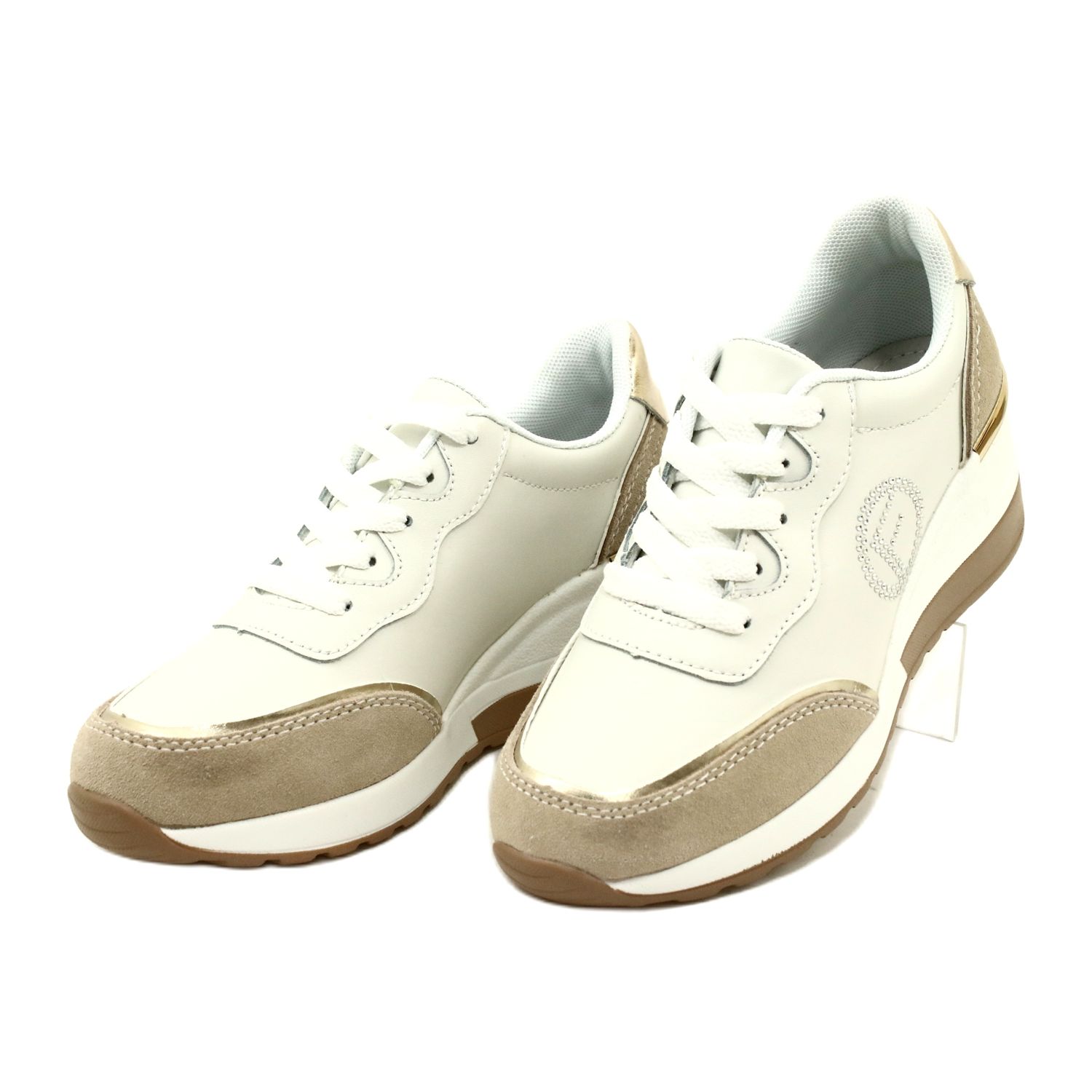 Filippo DP4660/23 WH BE sports shoes - a combination of elegance and comfort in your daily release. Subtle white and beige colors with delicate accessories in the tone of Gold and decorative rhinestones give the shoes a sophisticated character, thanks to which they are great for both casual and more refined stylizations.