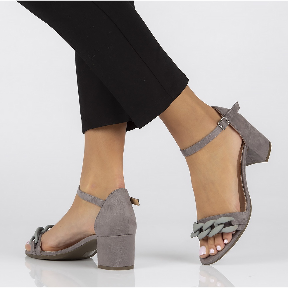 The 5.5 cm high block ensures stability and comfort of wearing, while the 0.5 cm high platform adds extra comfort. The round toe shape promotes freedom of movement, and the buckle fastening allows for easy adjustment to the foot. Additionally, the decorative chain is a stylish accent that attracts attention.