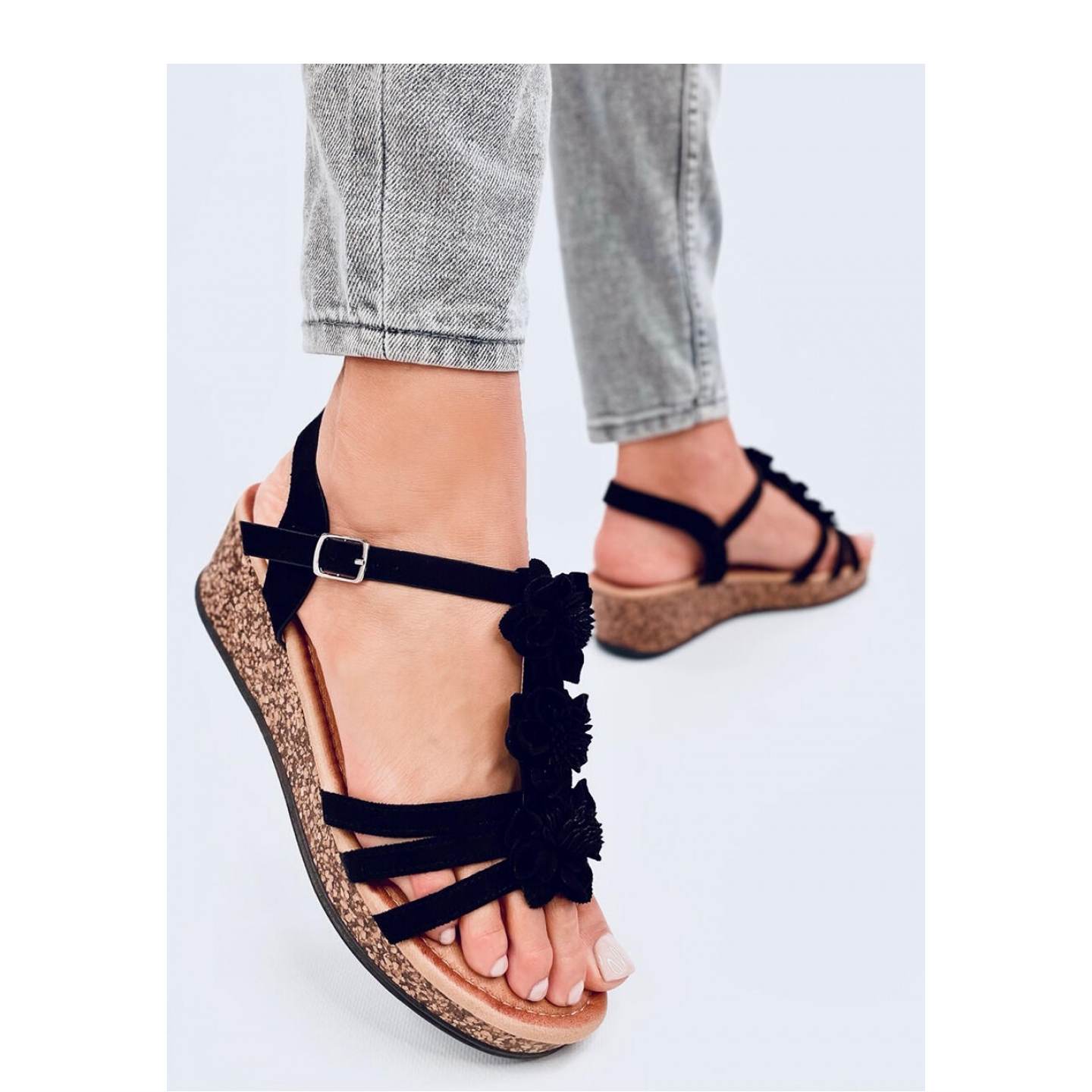 We present sandals on a wedge with Fisken Black flowers from INELLO - the perfect complement to your summer wardrobe! These elegant women's sandals are distinguished by an unusual design, which combines the latest trends and comfort of wearing.
