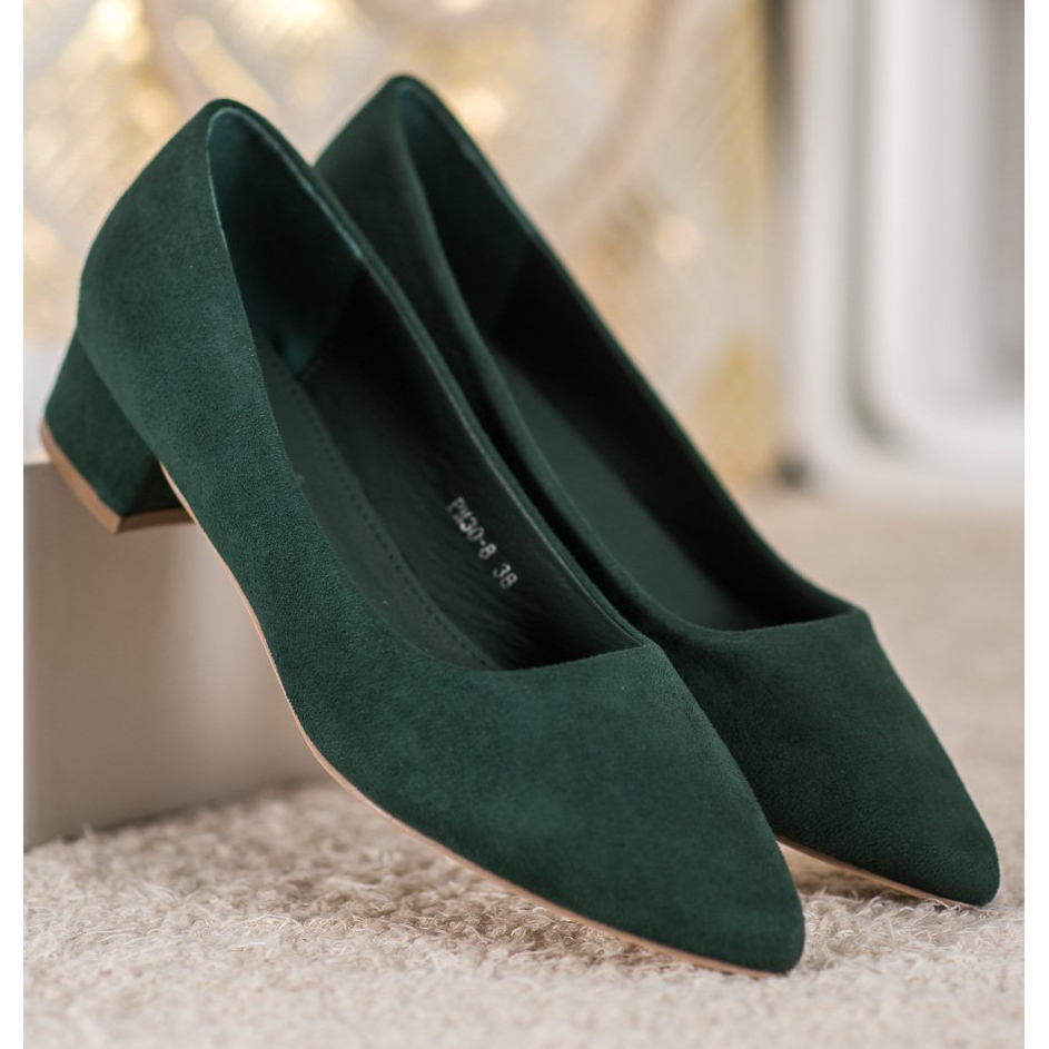 Discover elegance and comfort in one! SHELOVET pumps with a flat heel in bottle green are a great choice for women who value style and comfort. Made of high-quality, soft suede eco-leather, these shoes combine elegance and modernity.