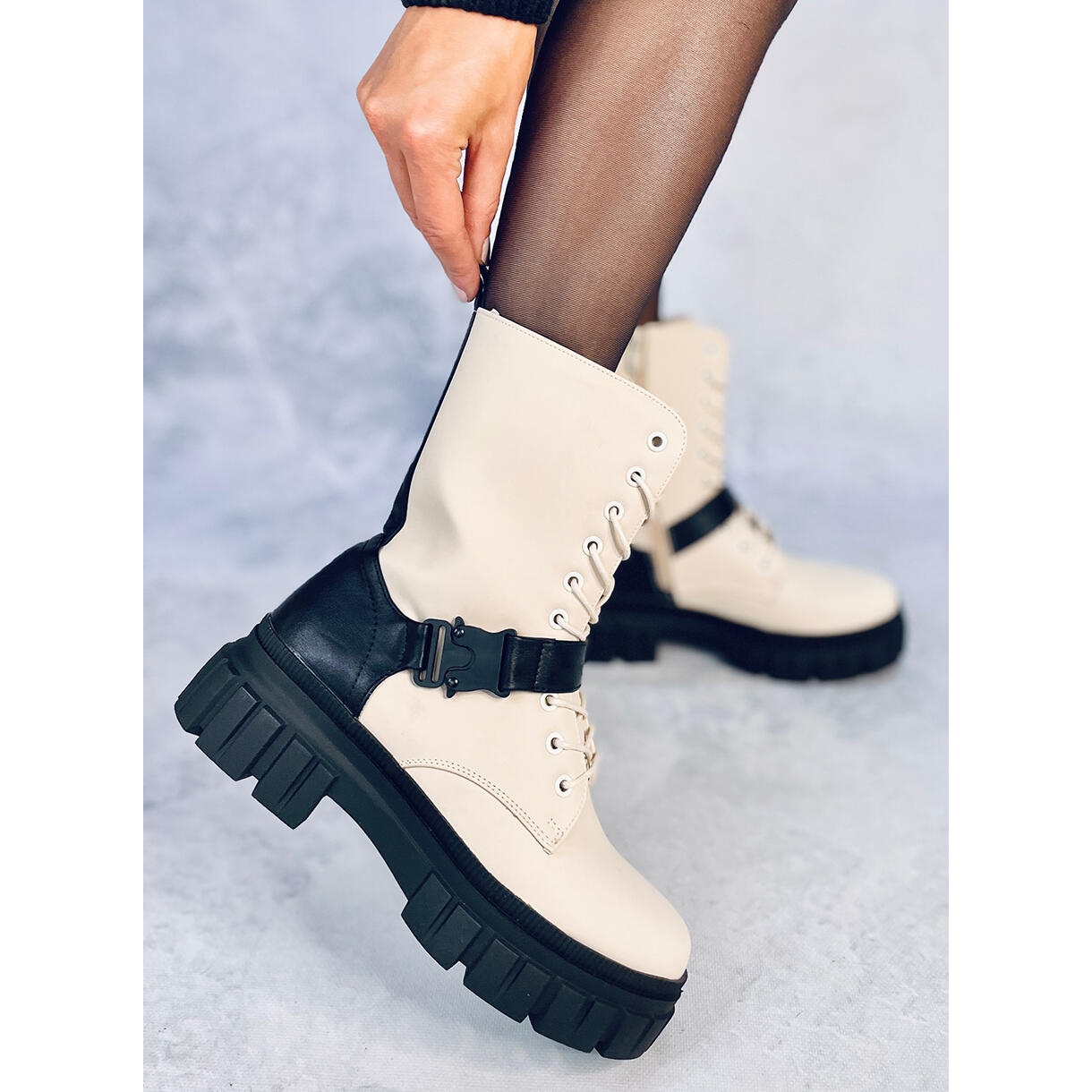 Elegant and practical women's boots in a fashionable military cut. Made of ecological leather with a matte finish, on a stable, high sole. Classic lacing allows you to perfectly match the shoe to the stretch of the foot, and the additional zipper makes it easier to put on. Insulated interior and foam undergrowth ensure comfort and heat even on cooler days.