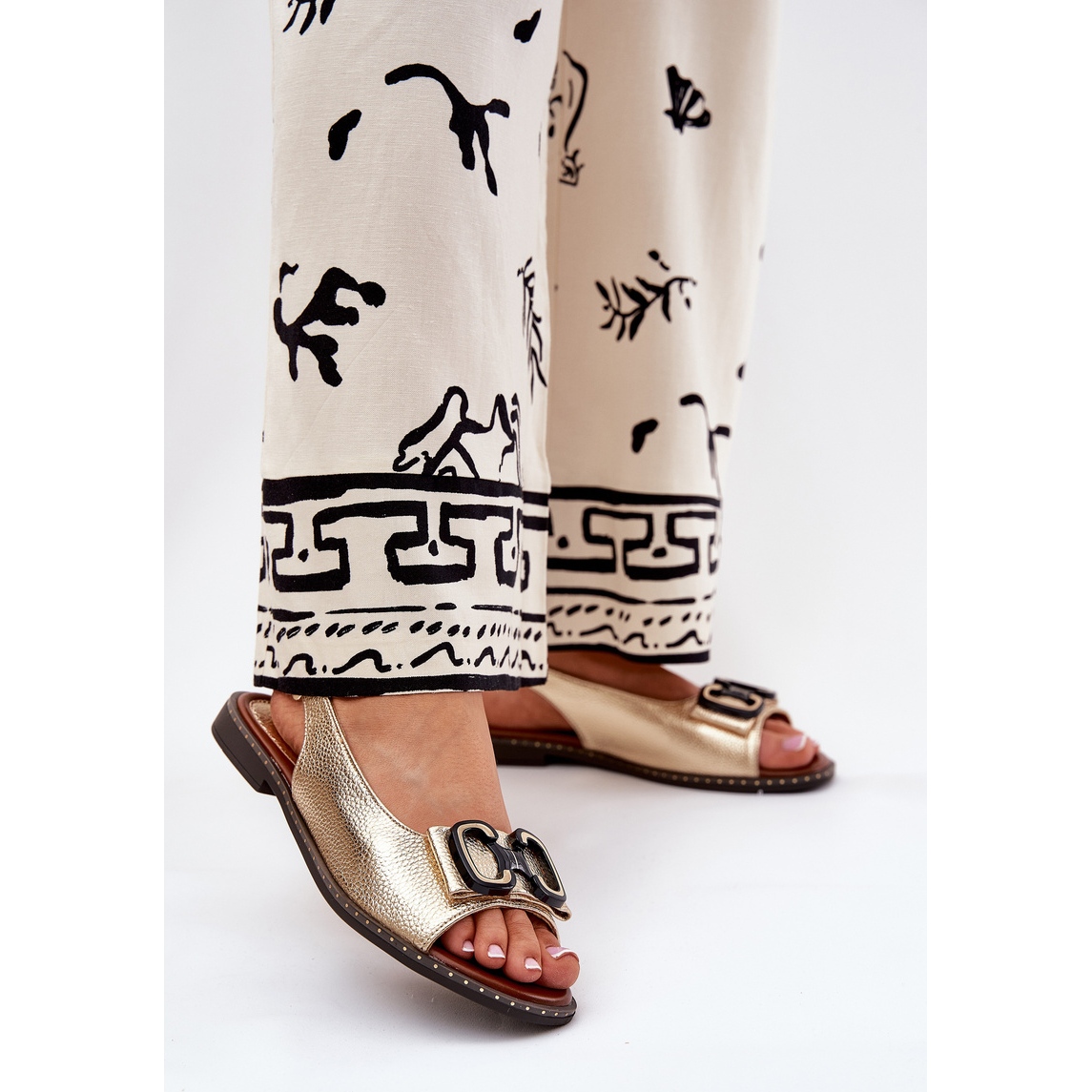 Details: Jezzi Flat sandals with an eco leather decoration golden