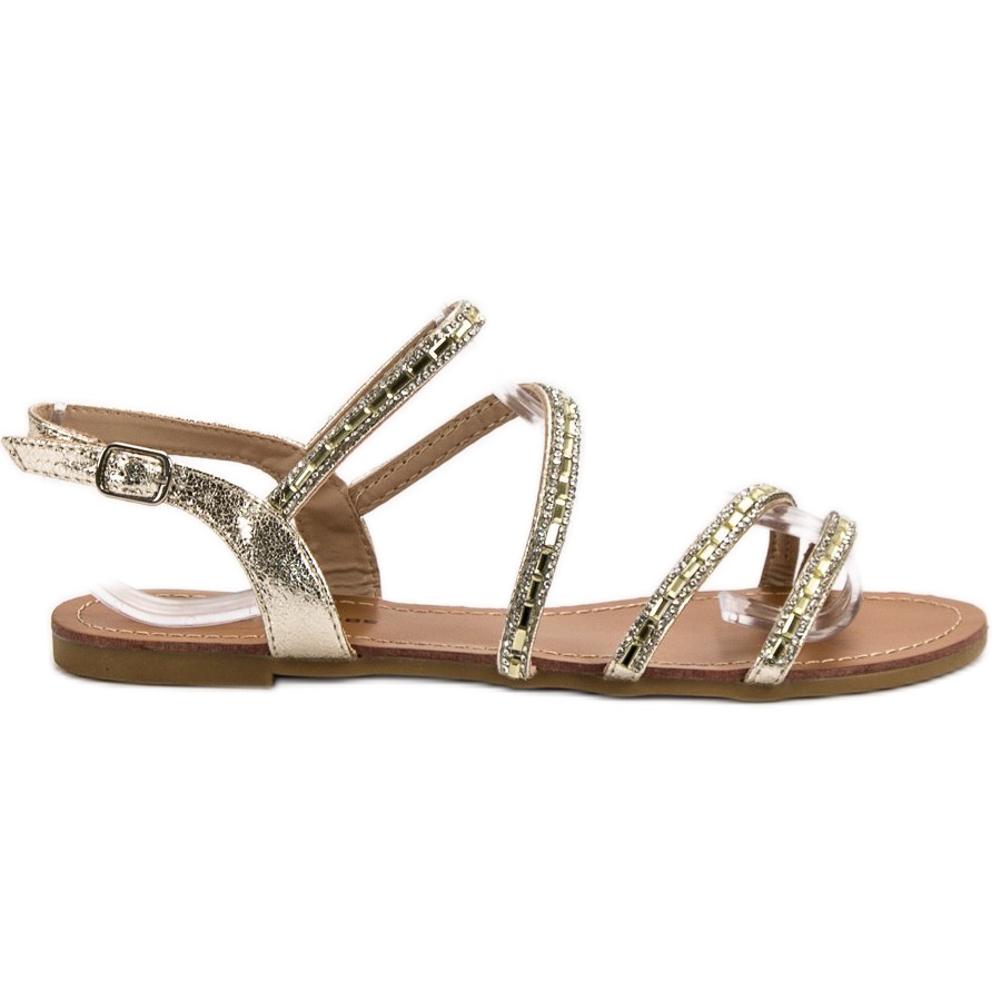 L. Lux. Shoes sandals are a great choice for any fashionable woman who wants to enjoy style and comfort on warm days. These flat sandals in shades of yellow and gold stand out with elegant zircon embellishments that give them a unique character. The buckle fastening not only ensures a comfortable fit, but also adds subtle elegance.
