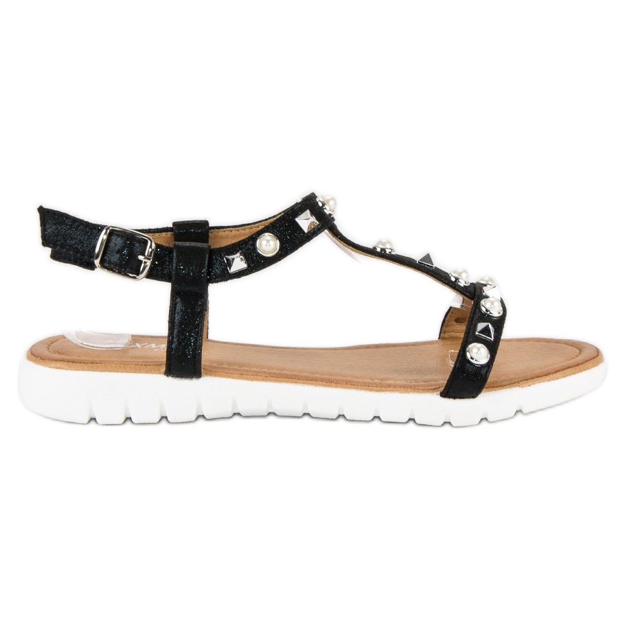 We present flat sandals with rhinestones in black, the perfect choice for warm summer days. These unique women's sandals are characterized by an elegant, classic design and an effective finish in the form of metal rhinestones, which give them an original and predatory look.