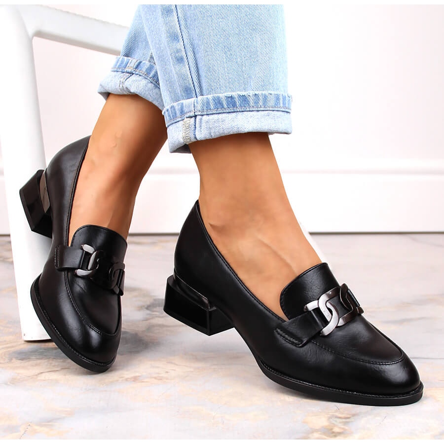 Black Vinceza 58162 flat shoes with chain are an ideal choice for women who value comfort and a fashionable look. Made of eco-leather, which provides an elegant and modern look, while being environmentally friendly. The interior of the shoes is lined with eco-leather, and the insole is made of natural leather, which ensures comfort of wearing all day long.