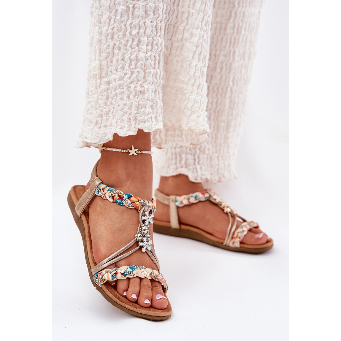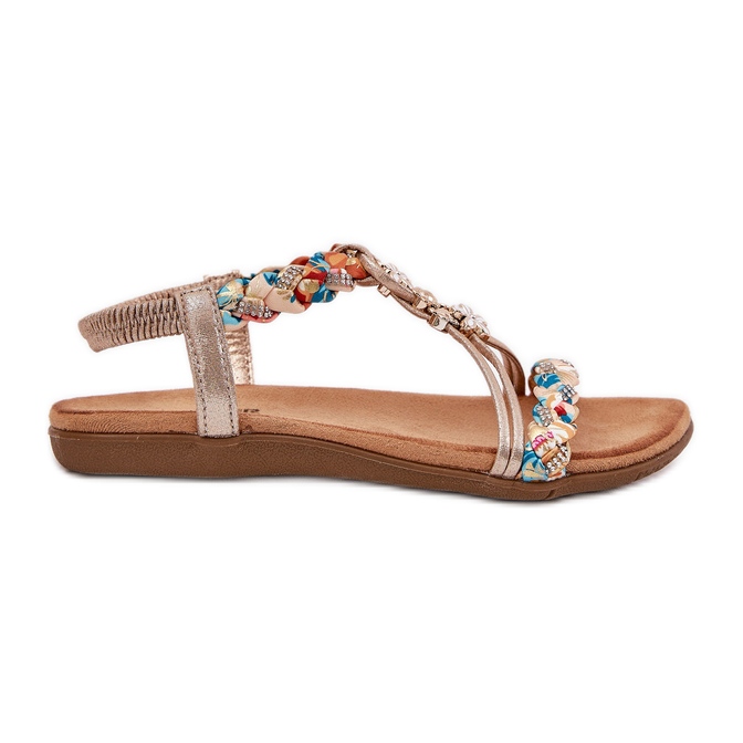 Details: Flat women's sandals with braided stripes and pins Artiker 54C1323 PLN golden