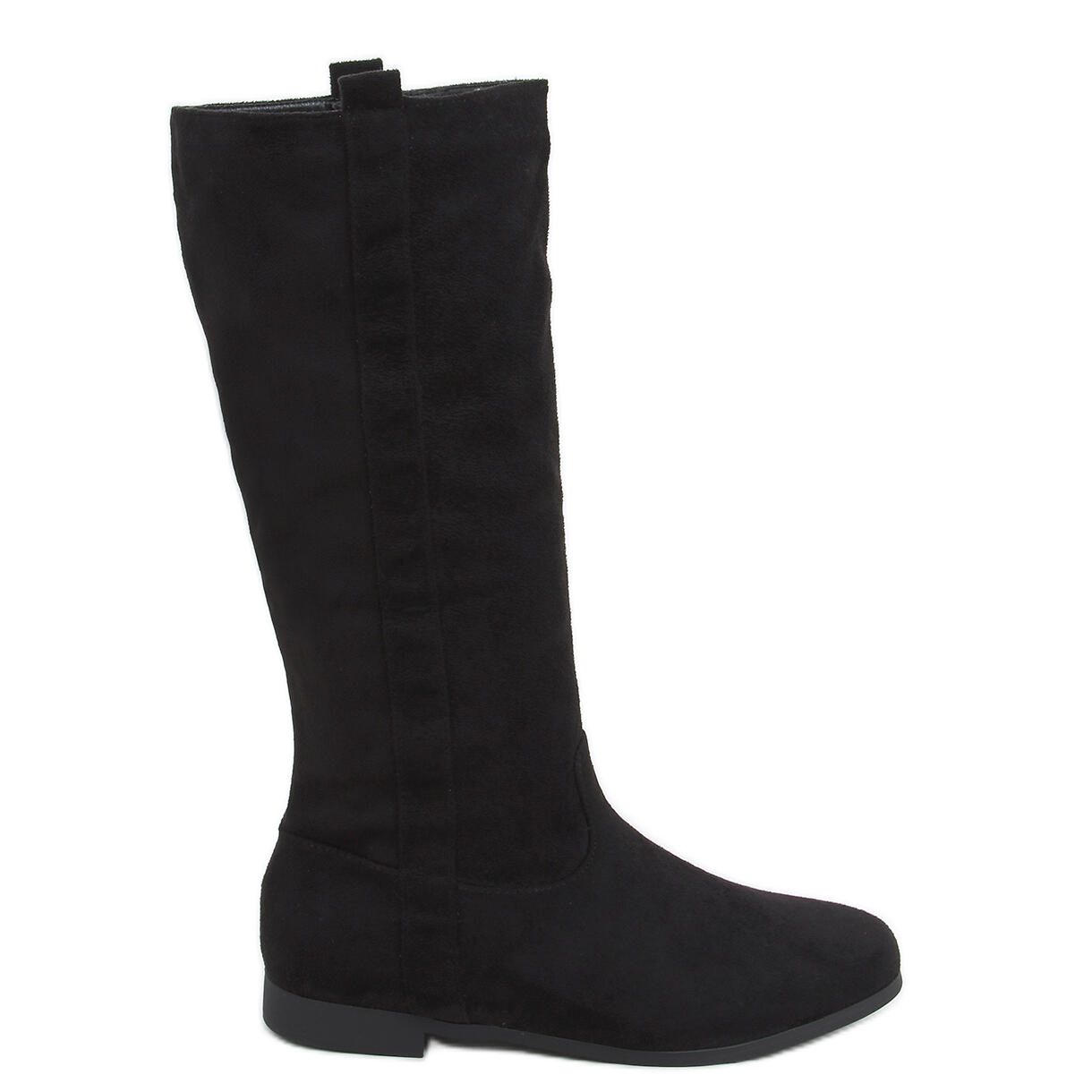 Discover the charming Flatty Black flat boots that will perfectly complement your everyday styling. Made of ecological suede, these classic black boots not only look elegant, but also provide high wearing comfort, thanks to their simple design and slip-on construction.