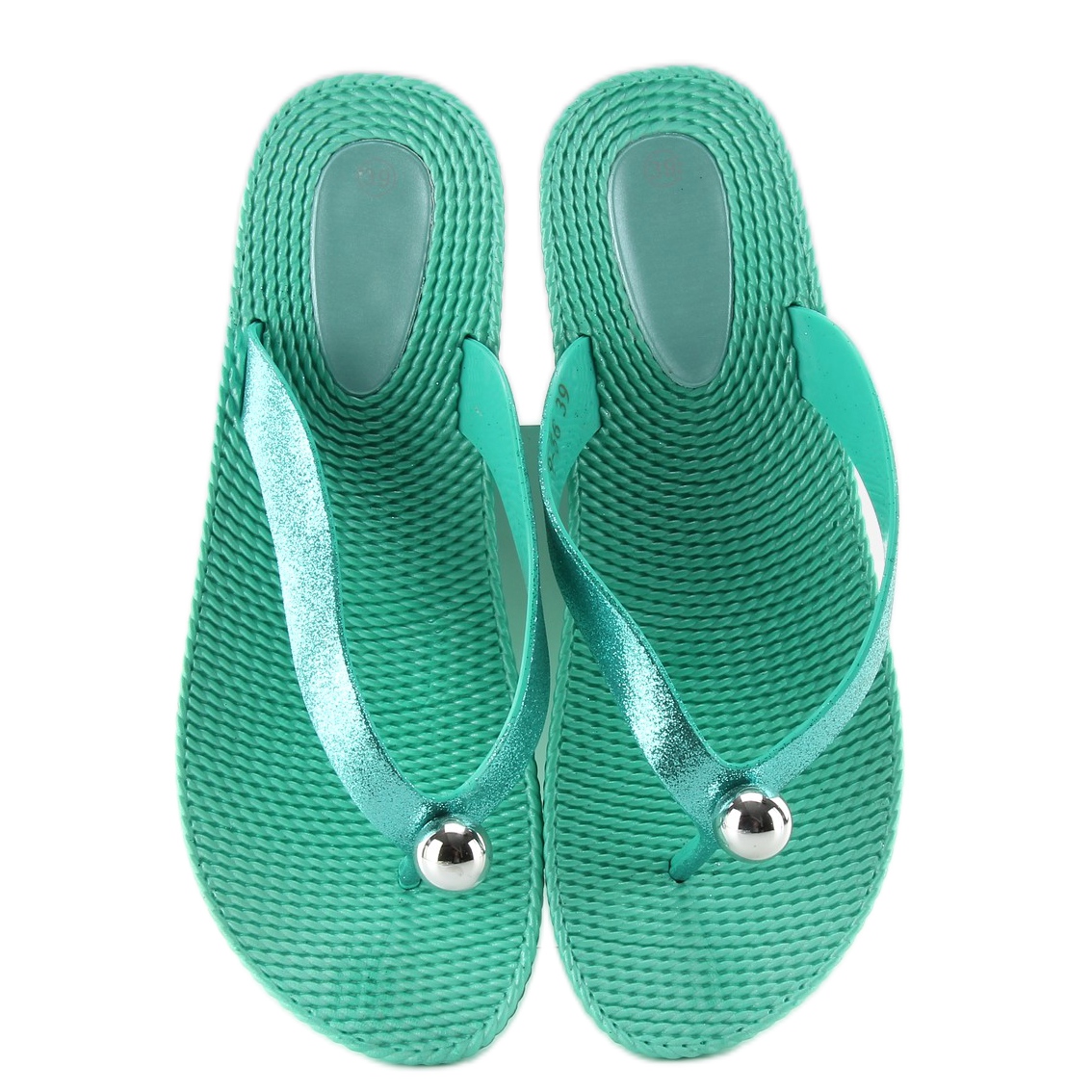 Discover the unique style and comfort offered by the 9-56 silver ball flip-flops in a green shade! These flip-flops are the perfect combination of elegance and everyday casualness, which will make every cleat a unique element of your summer wardrobe. Equipped with a tiny 3 cm wedge, they provide excellent support and add subtle height without sacrificing comfort.