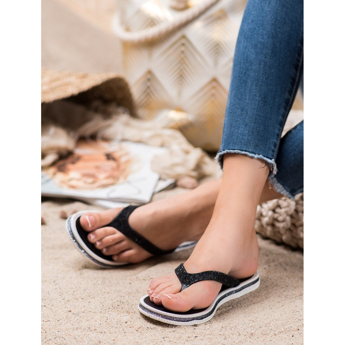 Discover incredible style and comfort with the glitter flip-flops from Bona! These elegant, black flip-flops are the perfect choice for warm days, perfectly complementing many casual styles. Thanks to their universal colors, they go great with both summer dresses and short shorts, adding a bit of shine to every look.