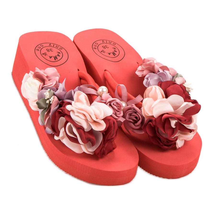 Discover the charm and comfort of the Fama Foam Wedge Flip-Flops in an intense red color. These incredibly feminine flip-flops are the perfect choice for warm summer days, decorated with beautiful floral motifs that add lightness and freshness.