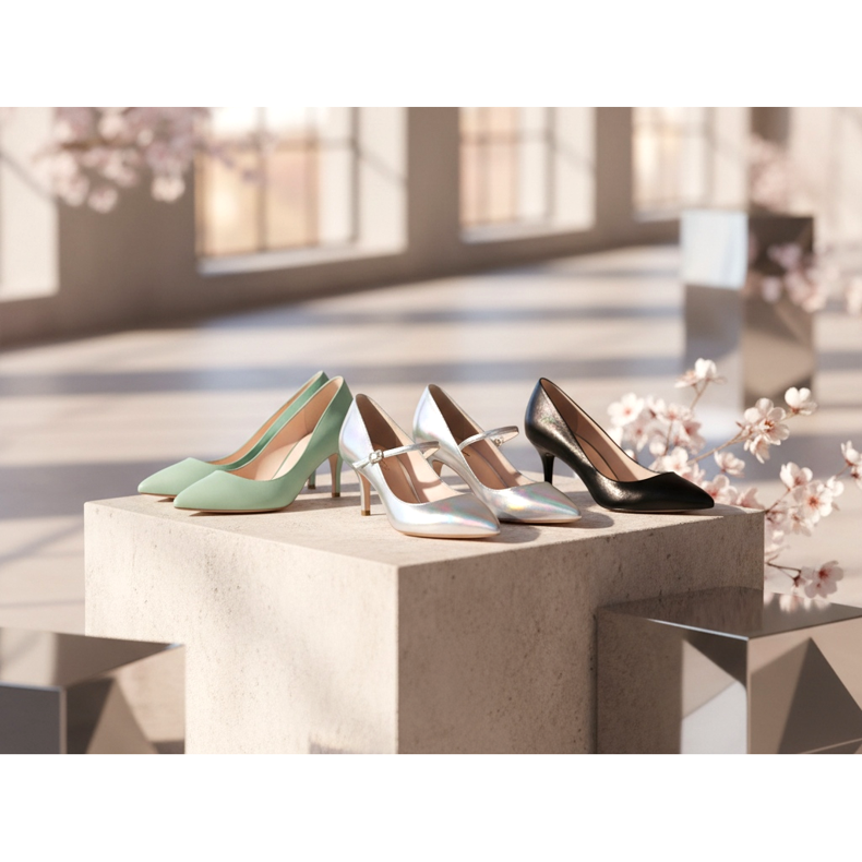 Kitten heels spring 2026 can be seen both in the classic pump form and in the Mary Jane version with a delicate ankle strap. This combination of two trends in one model is particularly interesting.