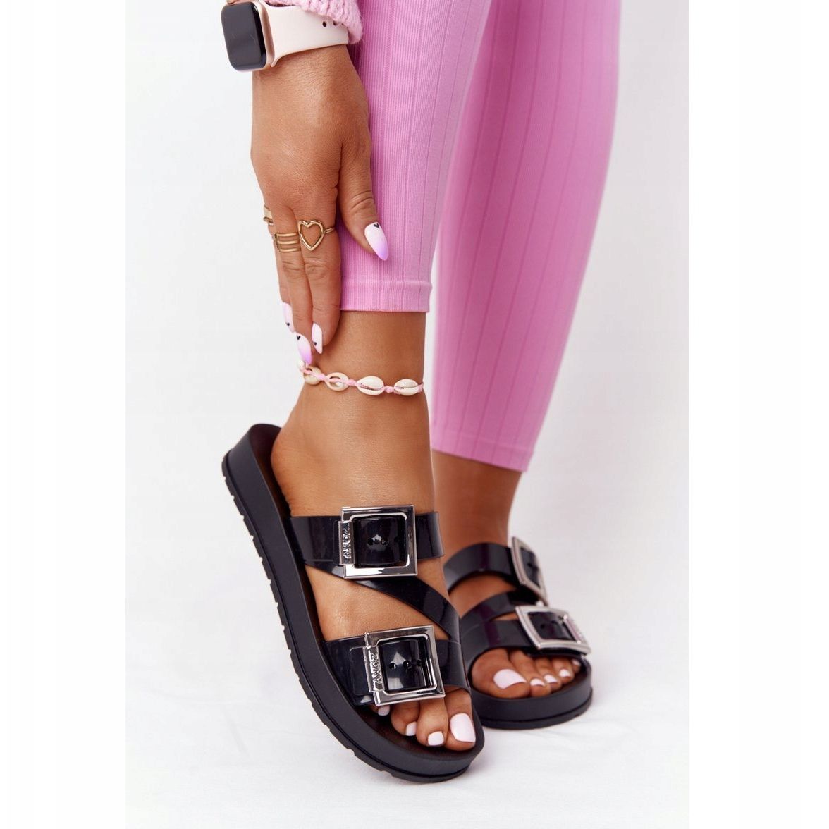The flip-flops have a slip-on design, which makes them incredibly easy to put on and take off. They have a 3 cm platform, which ensures comfort of wearing all day long. Due to the typical numbering, evenly given in the size chart, you can easily match the right size to your foot.