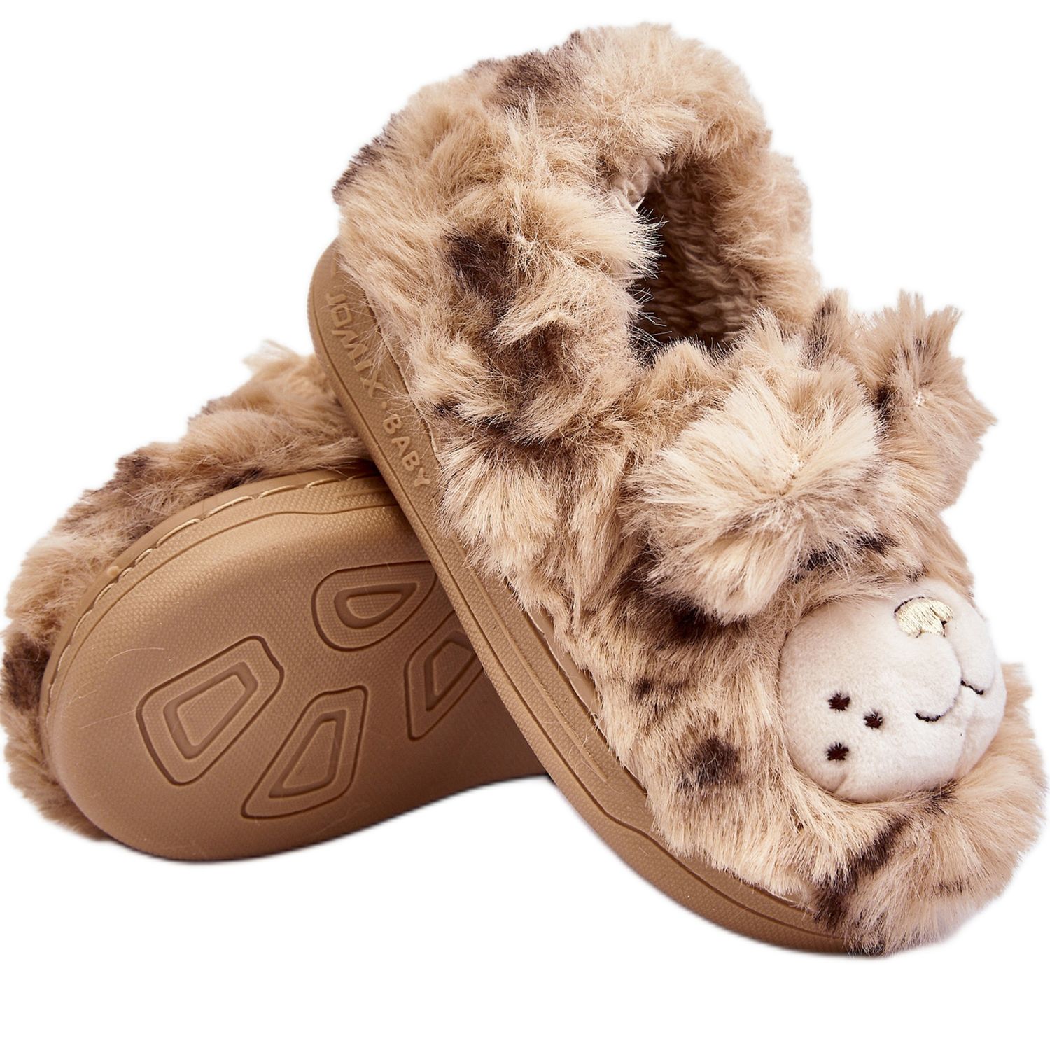 Details: Fur children's slippers with a teddy bear, Beige Apolanie