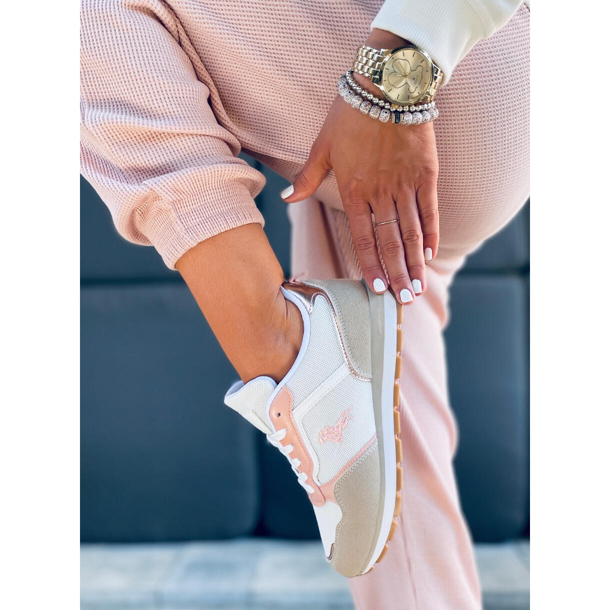 Discover spring joy with Furlo Pink women's sports shoes! These charming lace-up sneakers in beige, white and pink are the perfect choice for any active woman. A classic design that never goes out of style, combining style and comfort, providing comfort with every step.