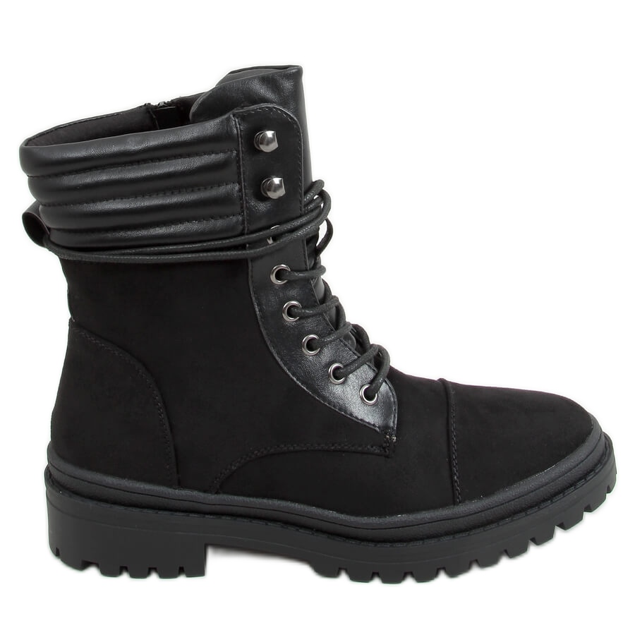 GABA BLACK women's workers - black, laced boots with a stylish, slightly military character. The original combination of eco-echo and ecological leather creates a fashionable, elegant effect that will complement both casual and more predatory stylizations. The sole with the protector ensures stability on various surfaces, and the zipper on the side of the upper facilitates quick putting on. The interior lined with delicate fur gives additional insulation - perfect for cooler days.