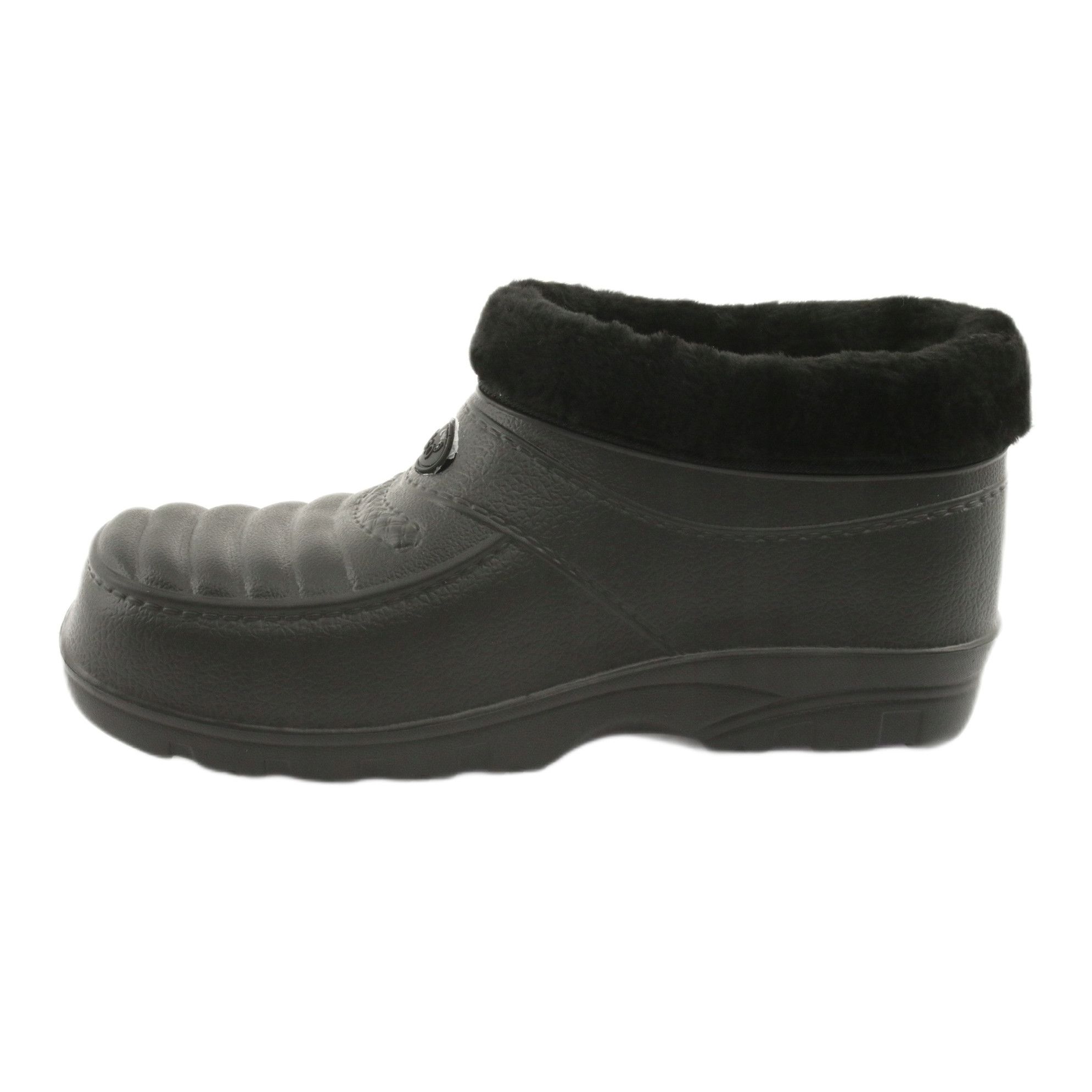 The inside of the shoes is insulated with pleasant fur that wraps the foot, offering exceptional comfort during use. Thanks to the special foam that perfectly adapts to the shape of the foot, you can be sure that you will feel at home in them. Low wellies with a shaft height of 8.5 cm and a width of G are distinguished by a simple but elegant black color, which makes them a universal addition to any men's wardrobe.