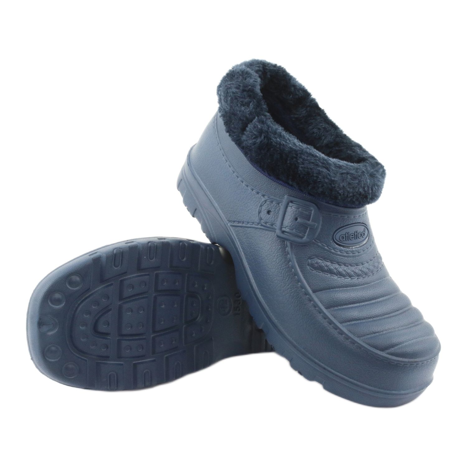 We present navy blue men's wellies from Atletico, which are perfect for rainy weather. These warm and stylish shoes, insulated with fur, guarantee not only dry feet, but also their comfort even on colder days. Thanks to the use of EVA foam, which perfectly adapts to the shape of the foot, wearing them is extremely pleasant.