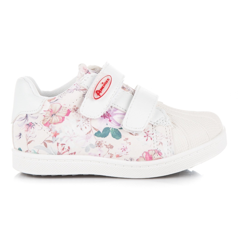American Club girls' sneakers in a charming, floral pattern are the perfect choice for little fashionistas who want to combine comfort with fashionable style. Made of high-quality eco-leather, they offer both durability and ease of care. The white background with colorful flowers adds lightness and joy, making them a perfect complement to any summer styling.