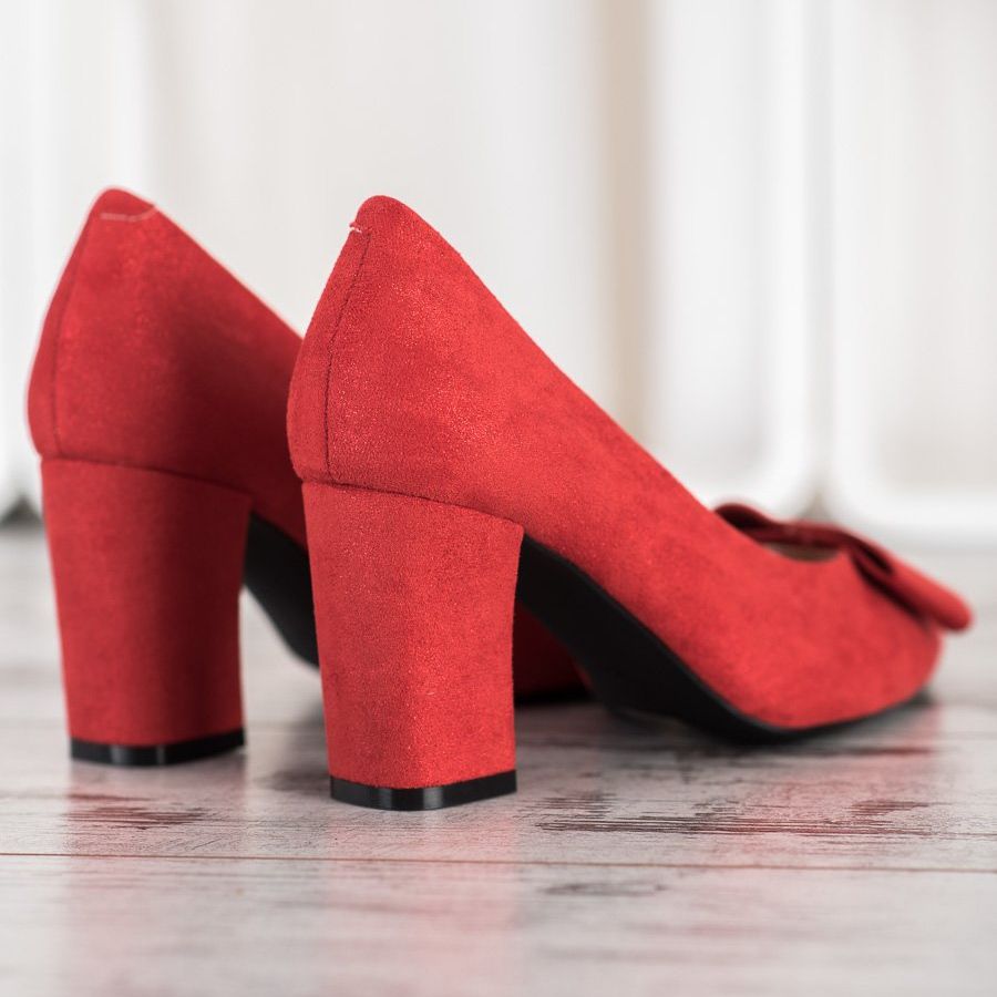 Made of ecological suede leather, the pumps offer not only an attractive appearance, but also comfort of use. The soft heel counter and natural leather insole provide comfort throughout the day. An additional advantage is the spectacular bow placed on the front, which adds feminine charm to the shoes and makes them stand out from other models.