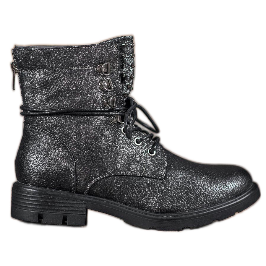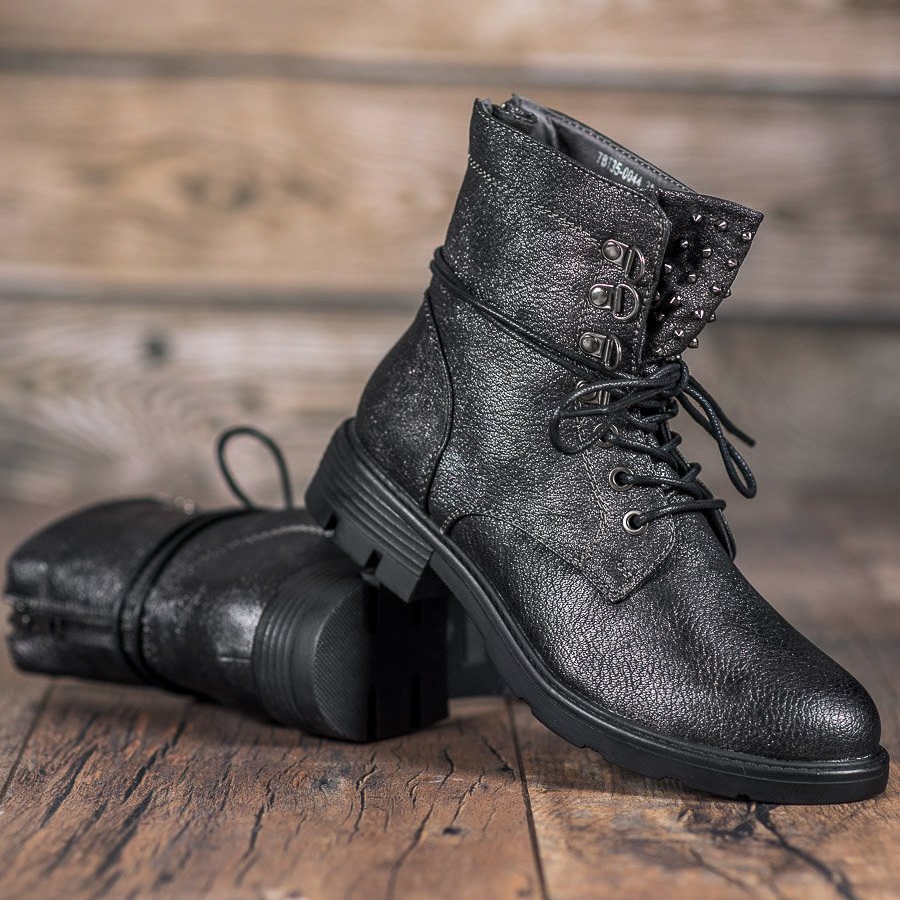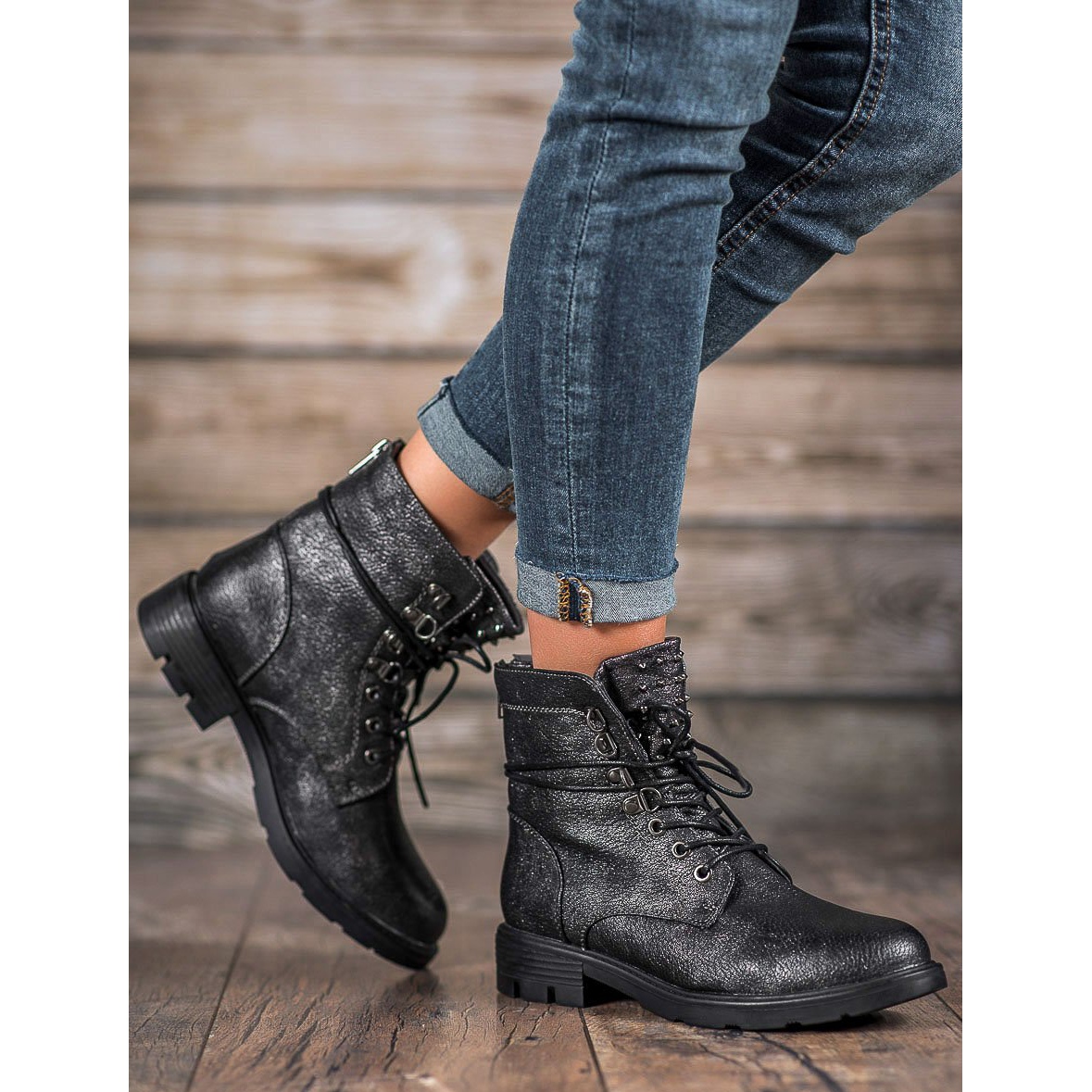 The 3.5 cm wide heel provides stability and comfort during everyday walks, and the ankle-high uppers with laces emphasize the fashionable, casual style. An additional decoration is the metallic rhinestones placed on the tongue of the shoes, which give them a slightly editorial look.