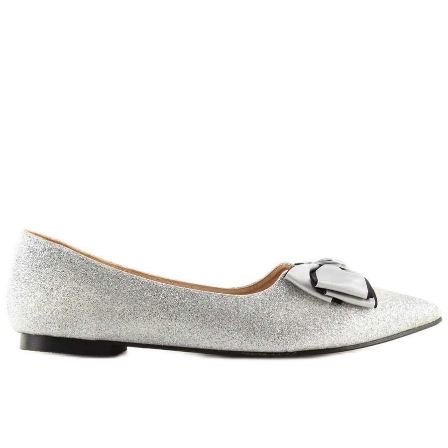 Glossy silver ballerinas LT101 in a shade of grey-brocade are the perfect choice for women who want to combine comfort with elegance. These dazzling women's shoes stand out with a tasteful design with an almond toe and a charming bow that adds a girlish charm.