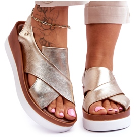 Details: Lemar Gold Morgan Leather Wedge Sandals golden
